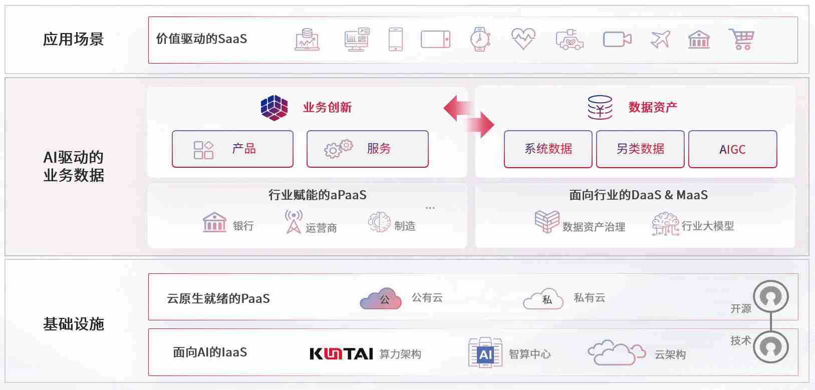 数字时代,,,,围绕企业数字化转型的关键要素,,,hlw.bet数码开创性的提出数云融合战略和技术体系框架,,,,着力在云原生、、、、数字原生、、、AI原生和信创产业上架构产品和服务能力,,,为处在不同数字化转型阶段的快消零售、、汽车、、、、金融、、、医疗、、、政企、、、教育、、运营商等行业客户提供泛在的敏捷IT能力和融合的数据驱动能力,,,构建跨界融合创新的数字业务场景和新业务模式,,,助力企业级客户建立面向未来的核心能力和竞争优势,,,,全面推动社会的数字化、、、、智能化转型升级。。。。